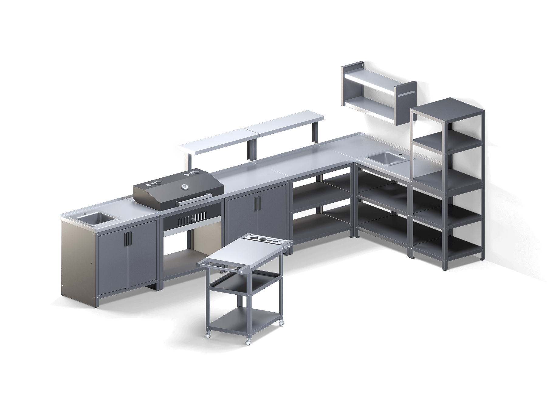 54×85×54 см · нержавеющая сталь · угловой модуль03 дополнительные модули Ещё больше расширяют возможности уличной кухни