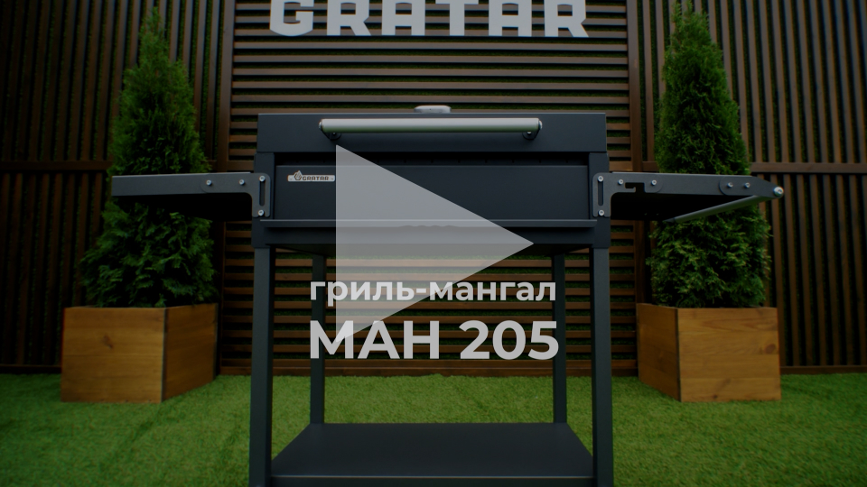 Функциональный гриль-мангал из толстой стали со складными полками и крышкой барбекю. Крышка оборудована термометром и заслонкой для регулировки притока воздуха, а в основании топки устроен выдвижной зольник.