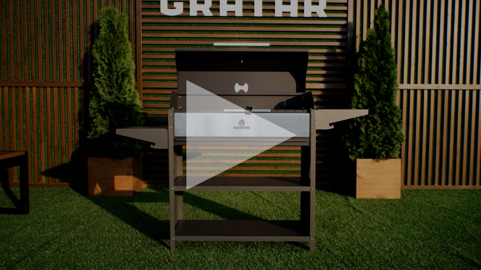 Вместительный гриль-мангал с крышкой барбекю. Топка с декоративной накладкой из нержавеющей стали и выдвижным зольником для регулировки интенсивности жара.